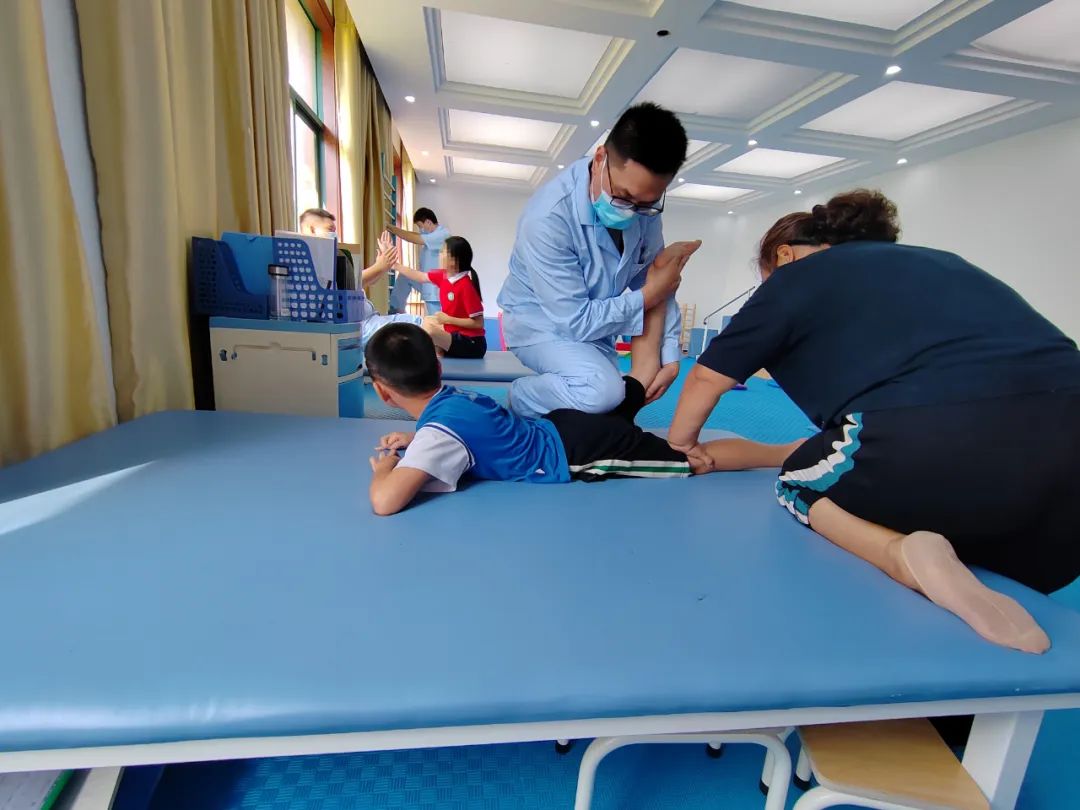 原因:长期处于卧位、坐位的患儿,大腿前面肌肉及大腿后面肌肉变短,导致下肢不能伸直